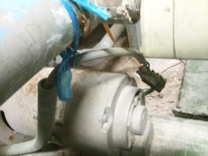 今回は、ポンプの電源接続端子箱などが無く、直に電線がポンプから出ている場合の